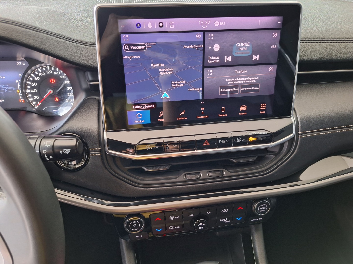 • Controle de som no volante