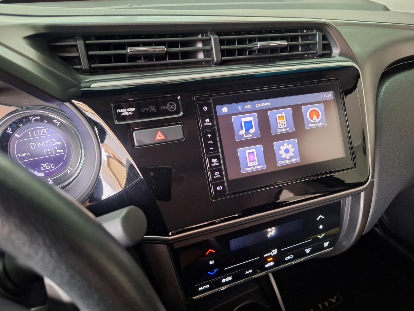 • Controle de som no volante